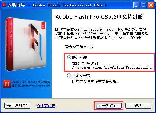下載地址二(高速):點我下載 Adobe Flash CS5.5 安裝包