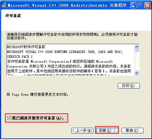 8、勾選“我已閱讀并接收許可條款”,然后點擊“安裝”。