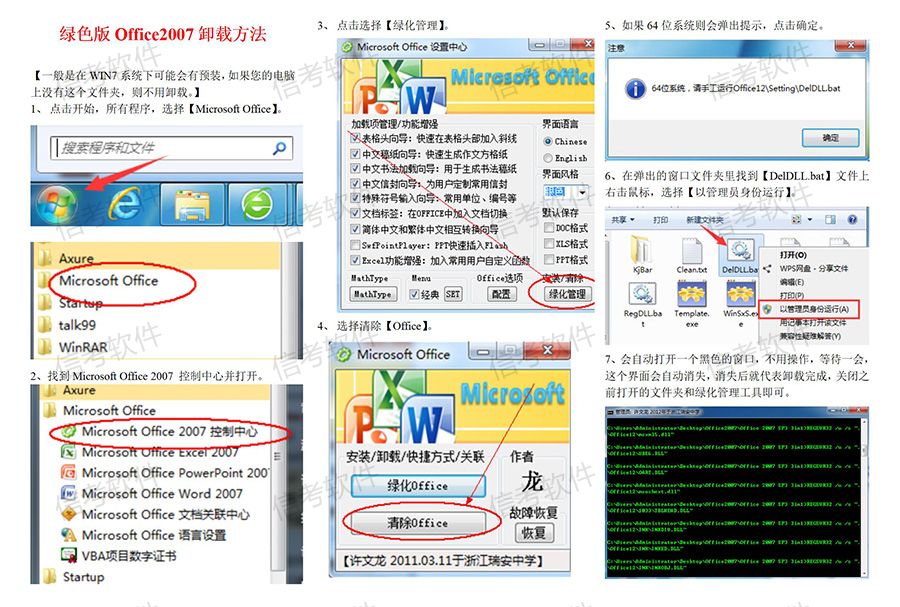 4、如果電腦上存在【綠色版Office2007】,則參考下圖卸載。如果不存在,如果不存在則跳過繼續(xù)往下閱讀。
