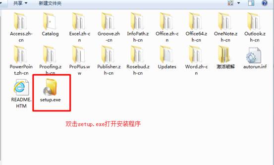 5、打開文件夾“Microsoft office 2010”,然后雙擊“setup.exe”打開安裝程序。