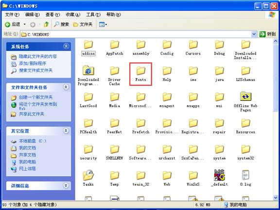 4、在“Windows文件夾中”找到“Fonts”文件夾,