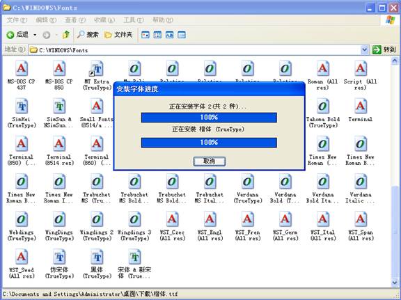 6.會(huì)出現(xiàn)正在安裝字體界面,耐心等待字體安裝完成。