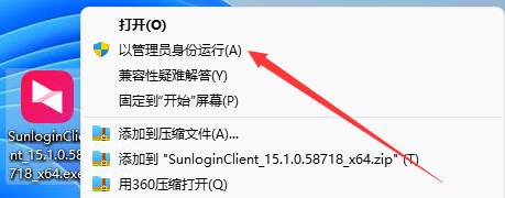 2、在向日葵遠(yuǎn)程安裝包上右擊鼠標(biāo),選擇以管理員身份運行打開程序。
