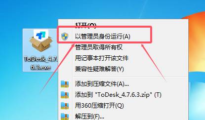 2、在ToDesk安裝包上右擊鼠標,選擇以管理員身份運行打開程序